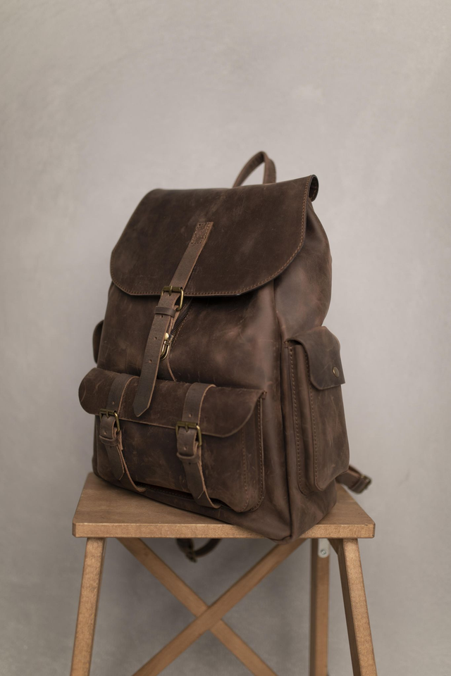 Itin talpi ir patvari kuprinė iš natūralios "crazy horse" apdirbimo odos, tinkama kasdienai, darbui ar kelionėms. Minimalistinis dizainas dera tiek vyrams, tiek moterims.