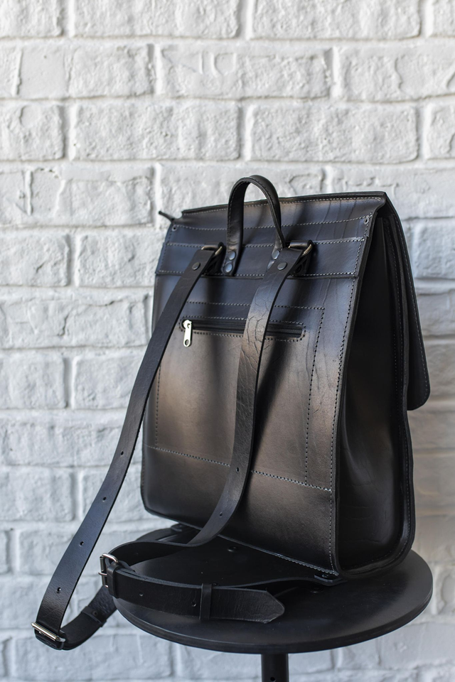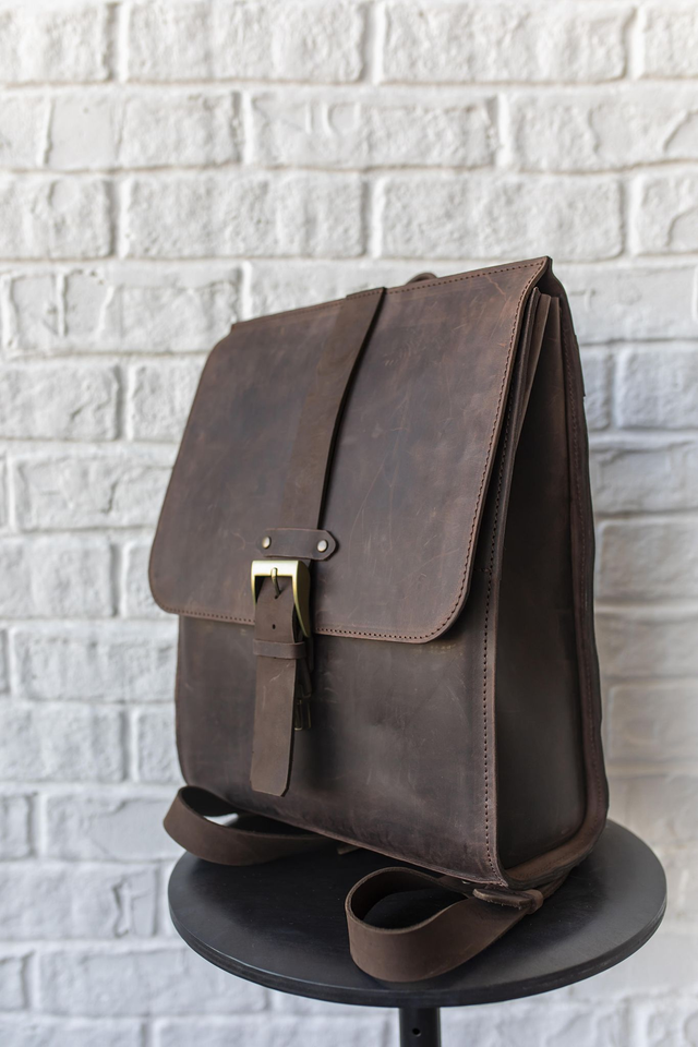Talpi ir patvari kuprinė, pagaminta iš natūralios „crazy horse“ ir „pull-up“ apdirbimo odos. Šiame gaminyje harmoningai dera skirtingos odos tekstūros – kuprinės bazė gali būti iš „crazy horse“ odos, o atvartas – iš „pull-up“ apdirbimo odos, suteikiančios išskirtinį charakterį ir unikalų stilių.