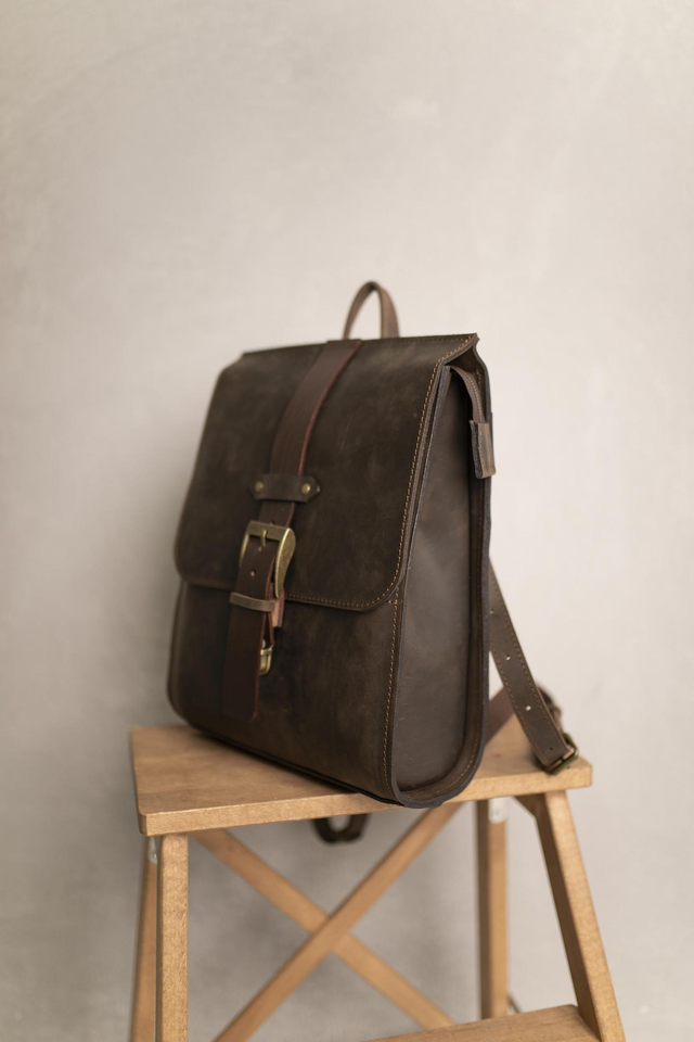Kompaktiška ir stilinga kuprinė, pagaminta iš natūralios „crazy horse“ ir „pull-up“ apdirbimo odos. Skirtingos odos tekstūros šiame gaminyje harmoningai dera tarpusavyje – kuprinės bazė iš „crazy horse“ odos, o atvartas iš „pull-up“ apdirbimo odos, suteikiančios išskirtinumo ir charakterio.
