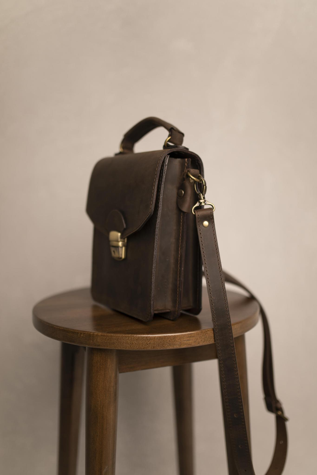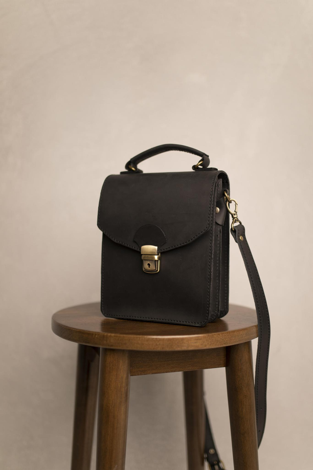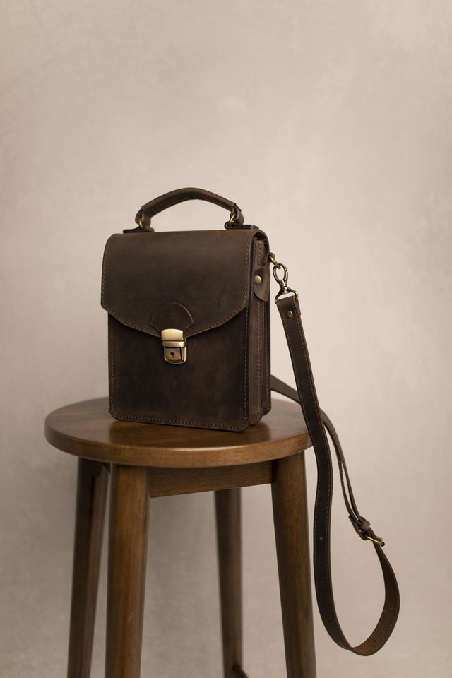 Kompaktiška natūralios odos vyriška rankinė gaminama iš "crazy horse" ir "pull-up" apdirbimo odos. Minimalistinis dizainas, puikiai tinka kasdieniam naudojimui – telefonui, piniginei, dokumentams ar smulkiems asmeniniams daiktams. Dėl savo klasikinio dizaino rankinė dera tiek prie laisvalaikio, tiek prie tvarkingo, miesto stiliaus aprangos.