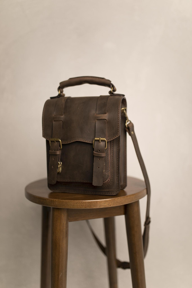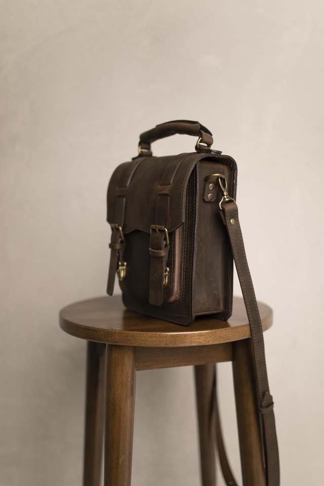 Kompaktiška natūralios diržinės odos rankinė gaminama iš "crazy horse" ir "pull-up" apdirbimo odos. Minimalistinis dizainas, puikiai tinka kasdieniam naudojimui – telefonui, piniginei, dokumentams ar smulkiems asmeniniams daiktams. Dėl savo klasikinio dizaino rankinė dera tiek prie laisvalaikio, tiek prie tvarkingo, miesto stiliaus aprangos.